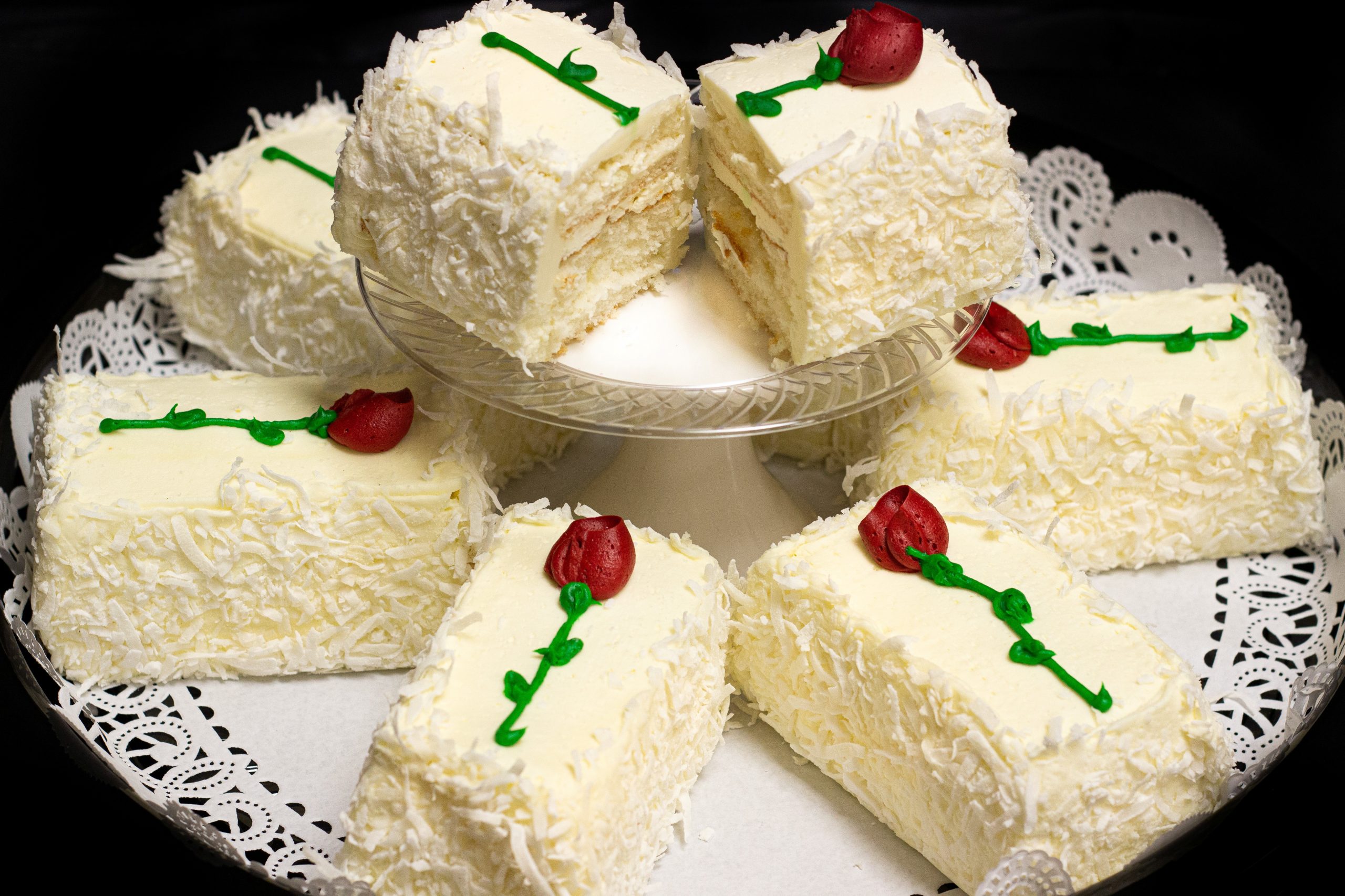 Online Ordering > Full Bakery Menu > Cakes > Roses in the Snow Cake Bars
