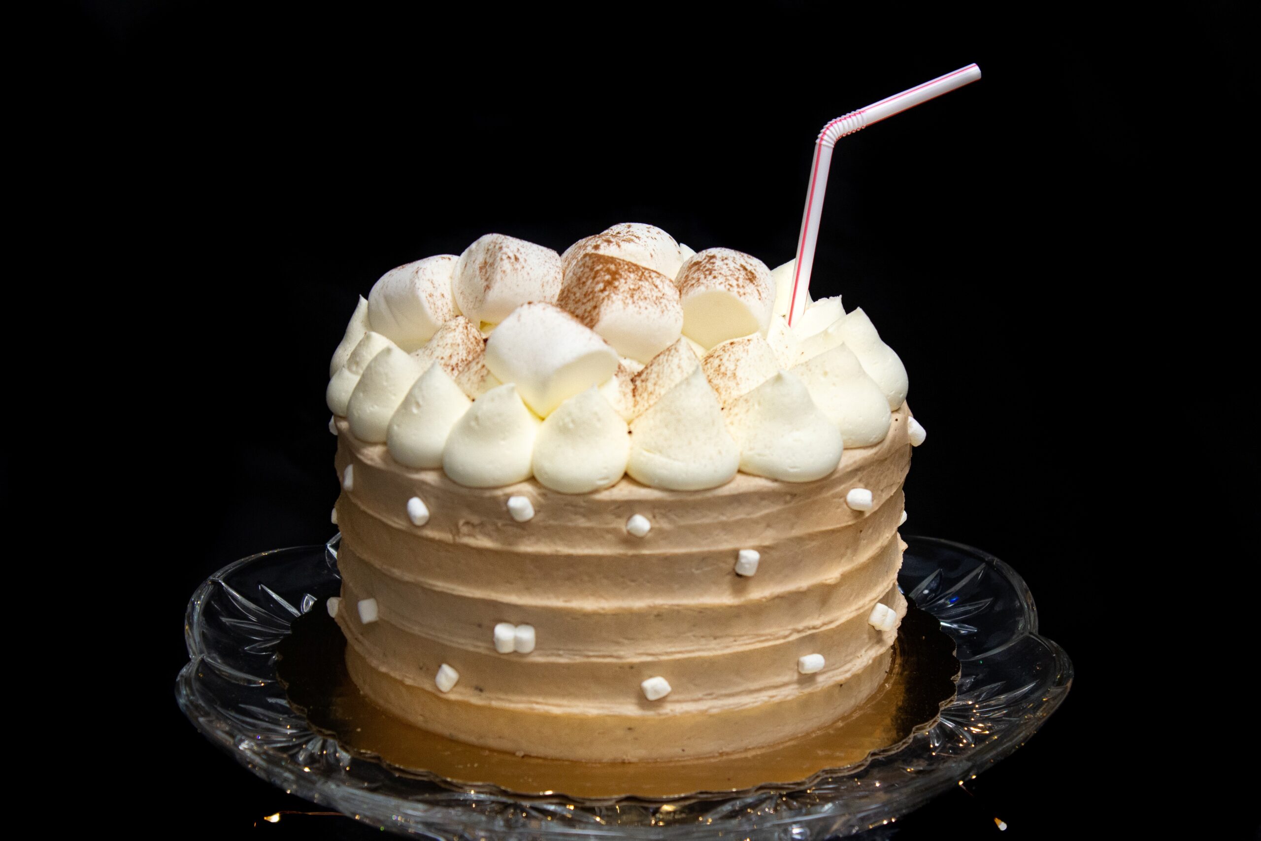 Craving hot chocolate? Try our 7″ Swiss Miss Cake! Layers of rich chocolate cake, hot chocolate buttercream, topped with vanilla buttercream and chocolate dusted marshmallows.